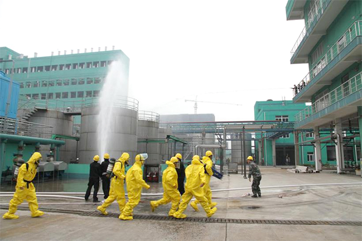 11月10日,在閏土生態(tài)工業(yè)園舉行了閏土生態(tài)工業(yè)園志愿消防隊(duì)事故應(yīng)急處置演練暨園區(qū)志愿消防隊(duì)第五分隊(duì)成立儀式。隨著閏土生態(tài)工業(yè)園規(guī)模的不斷擴(kuò)大,園區(qū)面臨的消防安全壓力也越來越大,為強(qiáng)化消防力量、鍛煉消防隊(duì)伍,經(jīng)股份公司批準(zhǔn),園區(qū)管委會(huì)保衛(wèi)部組織進(jìn)行了一次園區(qū)志愿消防隊(duì)事故應(yīng)急處置演練,同時(shí)舉行了園區(qū)志愿消防隊(duì)第五分隊(duì)(閏土染料公司)成立儀式。演練模擬包括員工在生產(chǎn)區(qū)域違章吸煙、亂扔煙頭而造成的車間內(nèi)易燃易爆物品引發(fā)的安全事故。