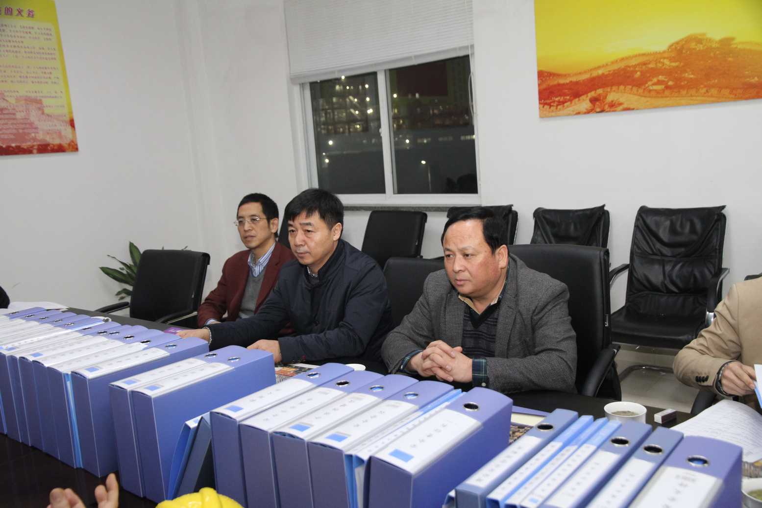 檢查組領(lǐng)導(dǎo)在認(rèn)真聽(tīng)取企業(yè)關(guān)于安全生產(chǎn)工作的匯報(bào)。圖中,中間為國(guó)家安監(jiān)總局職業(yè)健康司副司長(zhǎng)王建冬、左一為省安監(jiān)局總工程師李公杭、右一為紹興市政府副秘書長(zhǎng)章國(guó)金。
