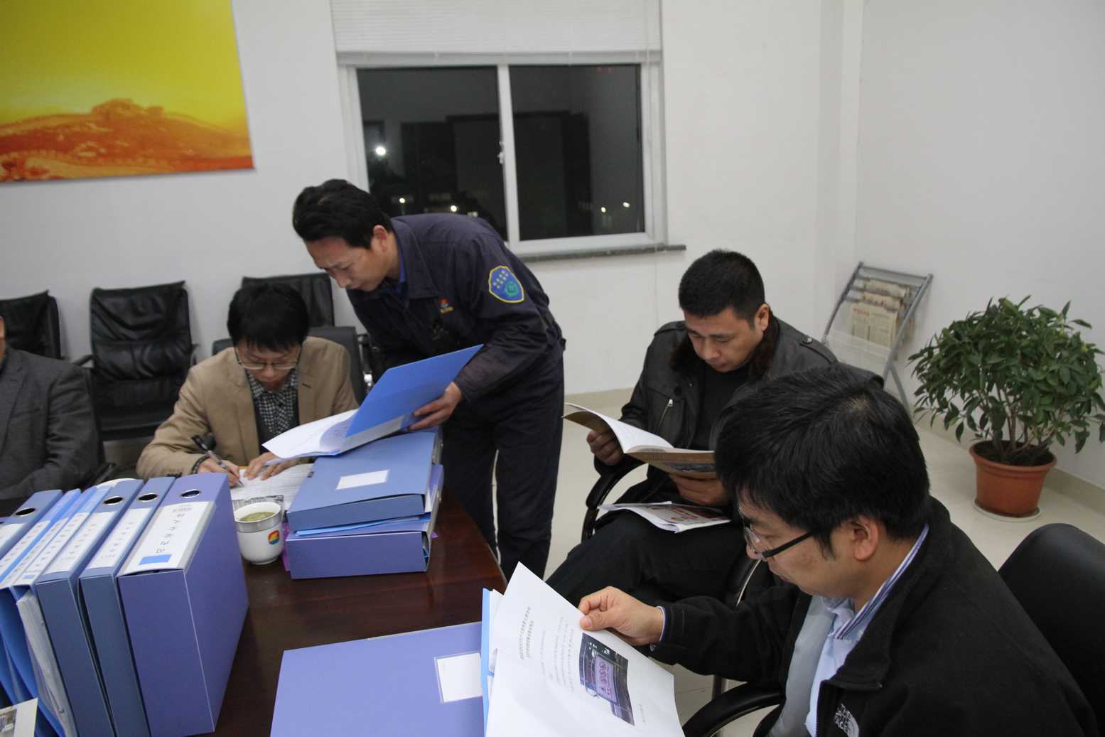 檢查組一行在認(rèn)真查閱企業(yè)安全生產(chǎn)臺(tái)賬。