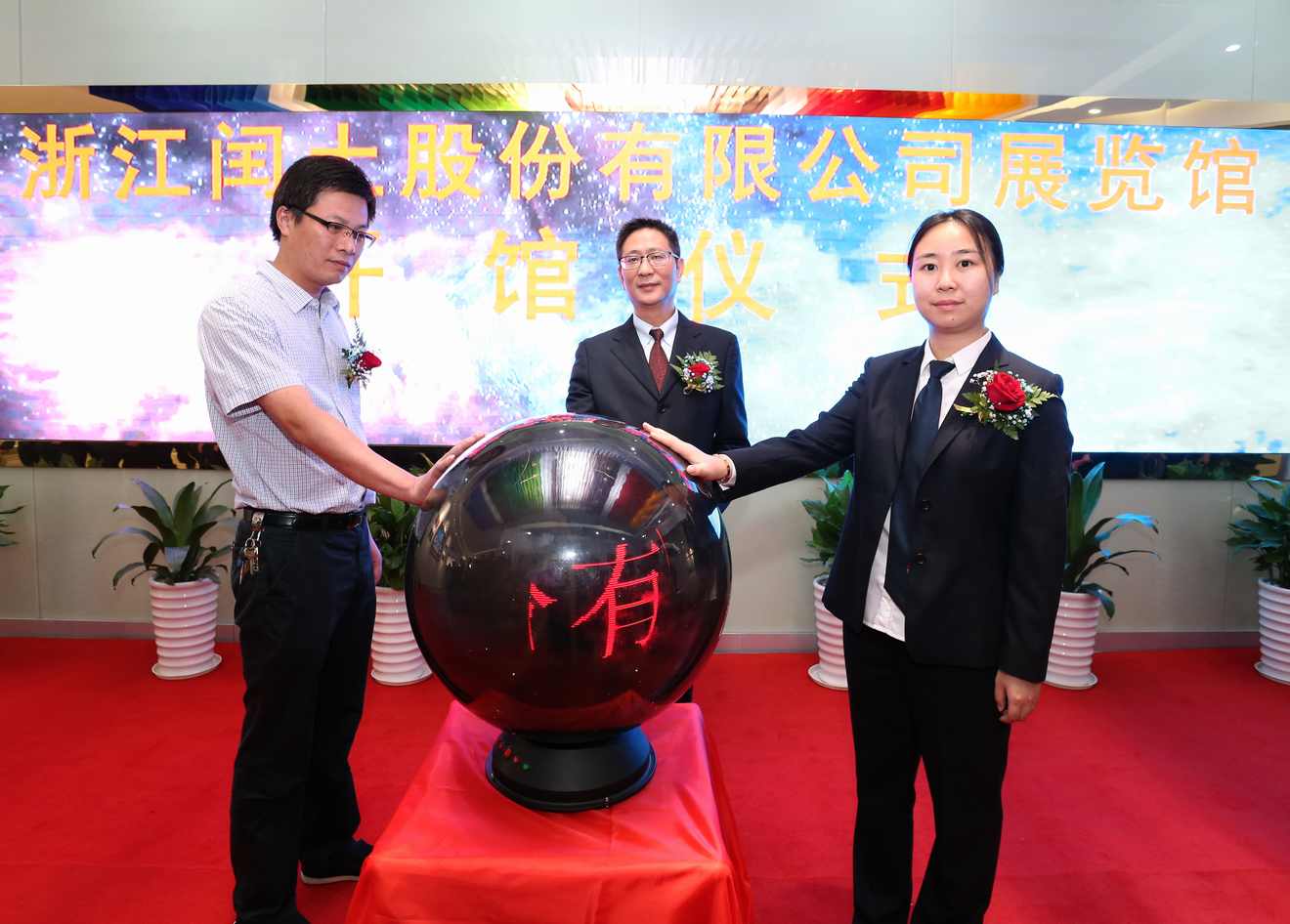 9月8日,閏土展覽館開(kāi)館儀式在閏土生態(tài)工業(yè)園科技大樓內(nèi)舉行。上虞區(qū)委常委、杭州灣上虞經(jīng)濟(jì)技術(shù)開(kāi)發(fā)區(qū)管委會(huì)主任胡文煒,道墟鎮(zhèn)黨委書記許江軍,浙江閏土股份有限公司董事長(zhǎng)阮靜波啟動(dòng)開(kāi)館水晶球。